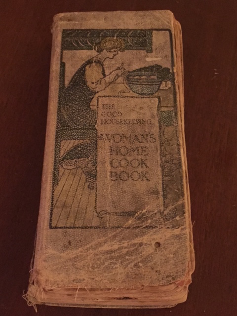 I recently discovered a box in storage of my parent’s old yearbooks and my mom’s baby book. Tucked into this box was an early 1909 hardback Good Housekeeping cookbook belonging to my great-grandmother, Carrie Vodak. Now Carrie was born in 1882 so this book is an antique.