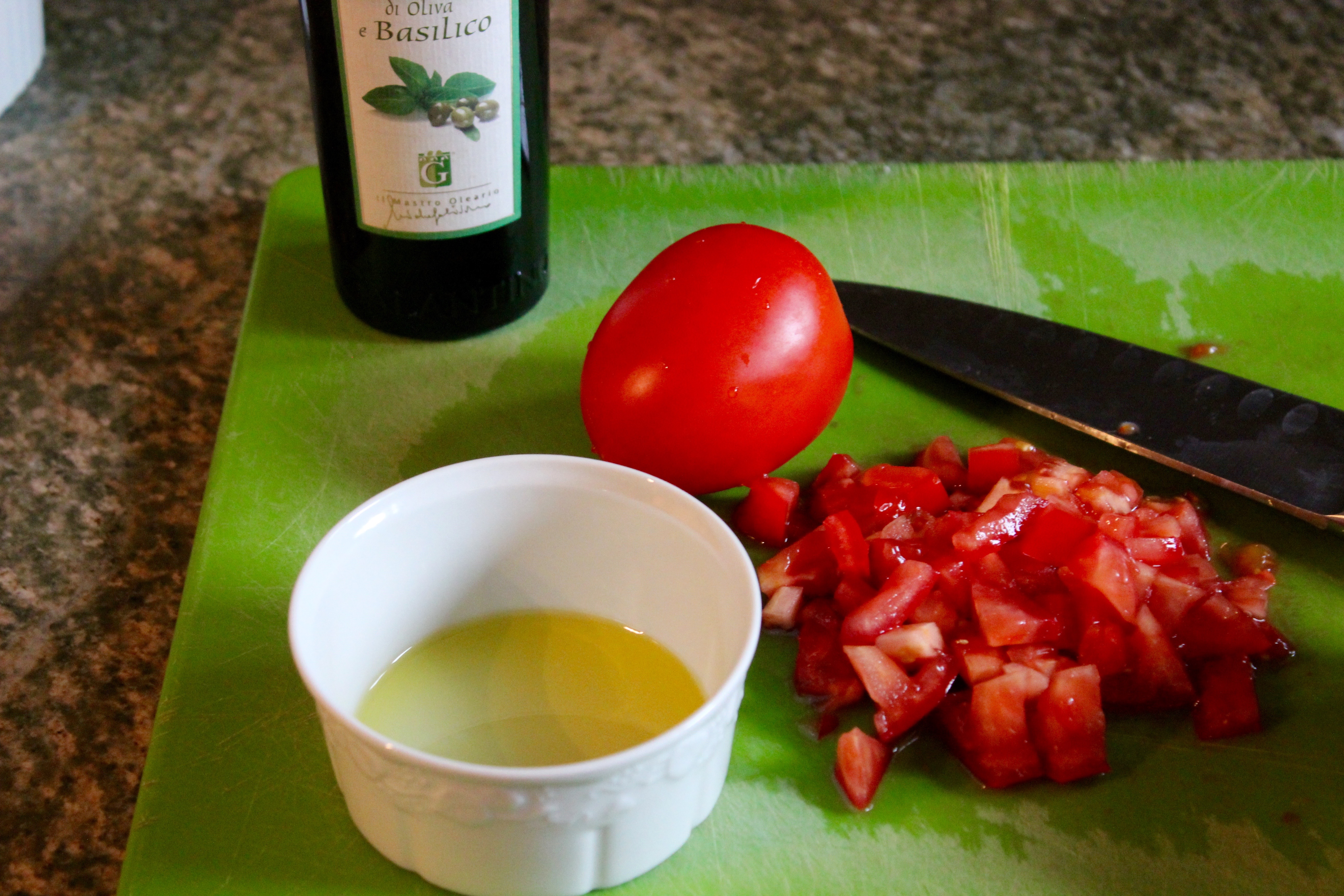 - Pour 1 tsp. of basil olive oil into the bottom of each ramekin.